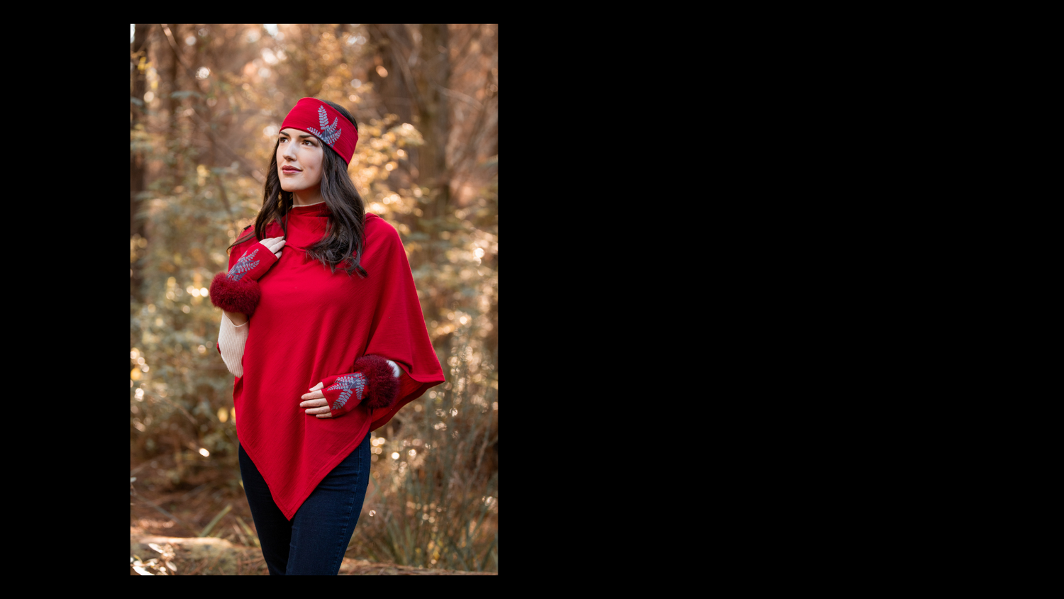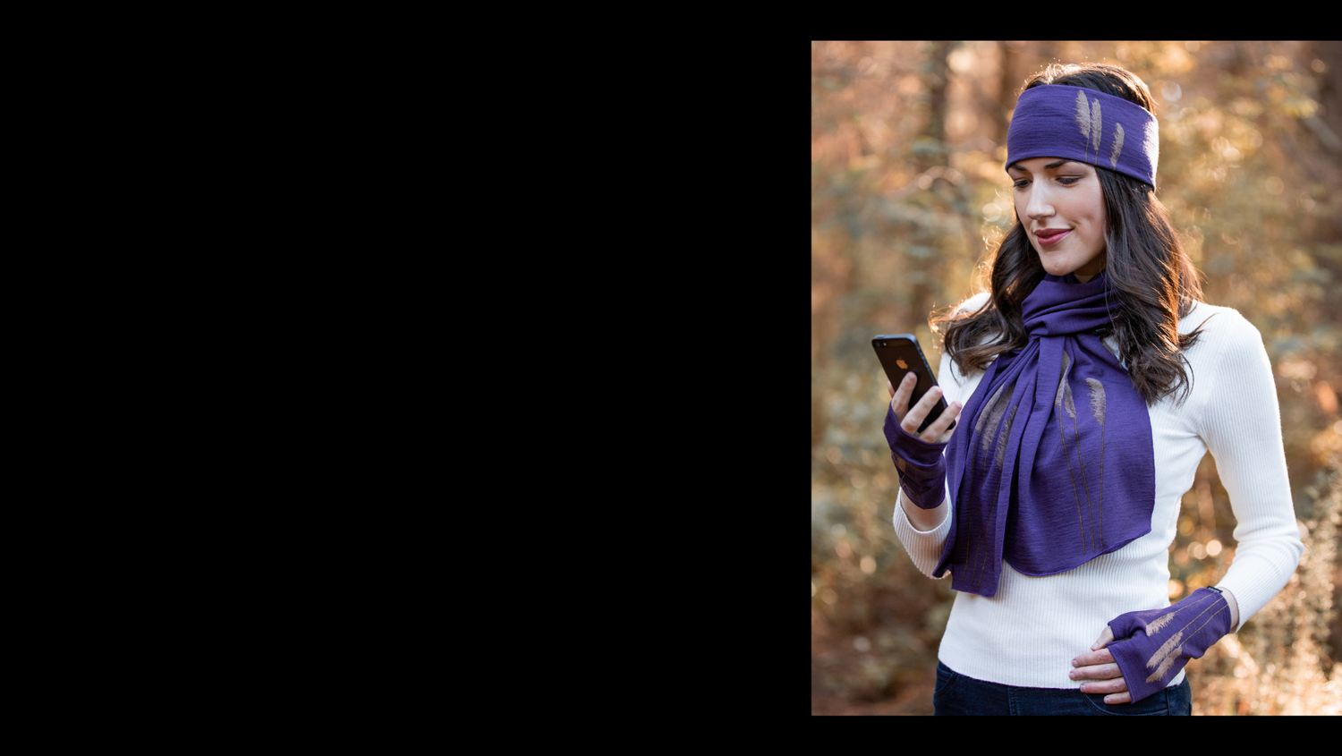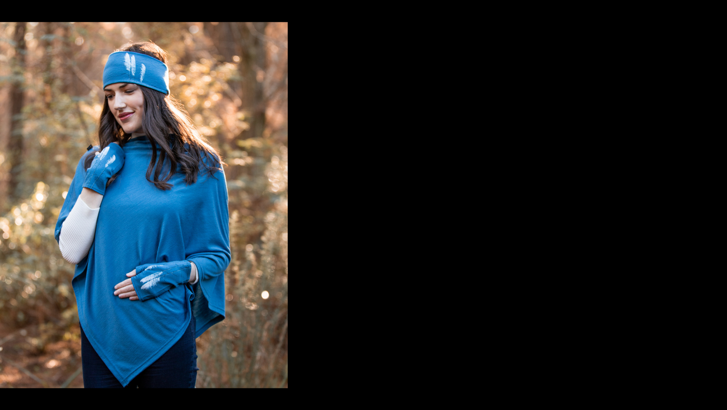 "I love the lightness of the scarf around my neck, plus gloves hat or head band to complete my look. Must have for winter- super cozy!!"